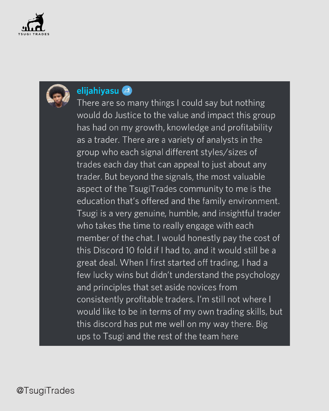 Elijah has been with our Trading Community for over 1+ Year. He shows up every Trading Day and puts in the work! Happy to have you on our team Elijah!